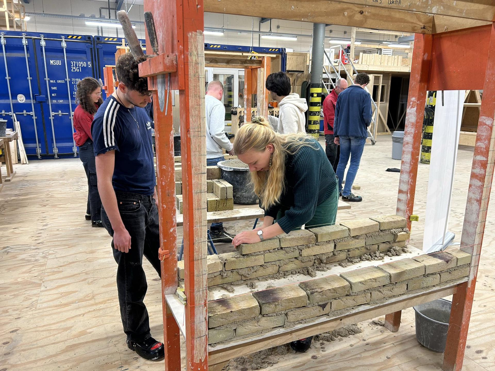 En toen… mochten we zelf aan de slag! Metselen bleek een ambacht dat tijd, geduld en precisie vraagt. Maar wat was het leuk om te doen – handen in de specie, stenen recht leggen, en vooral: voelen wat vakmanschap betekent.