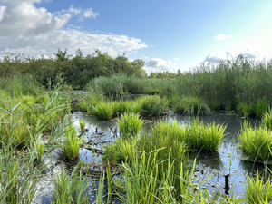 Petgat, begroeid met waterplanten. Het resultaat 1 jaar na de herstelwerkzaamheden.