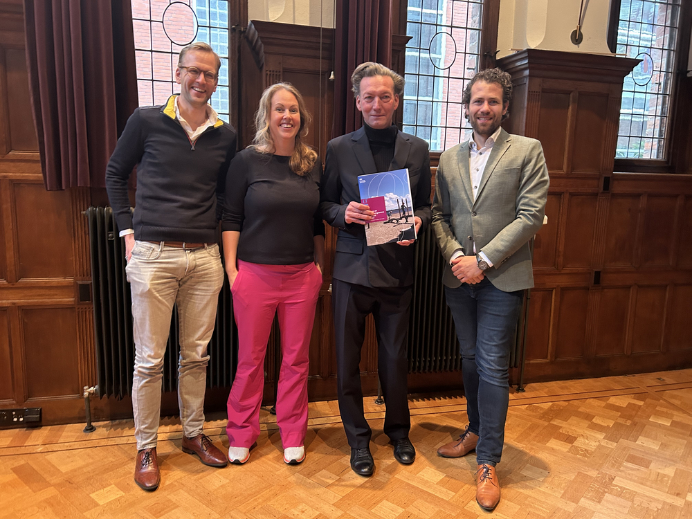 (V.l.n.r.) Apotheker Ebian Brill en huisarts Lianne Verbeek van Buuren, beiden (mede-) initiatiefnemer van gezondheidscentrum Meerstad in Groningen, gedeputeerde Tjeerd van Dekken en huisarts Tjitte Verbeek van Buuren initiatiefnemer van het Medisch Centrum aan de Radesingel in Groningen. Deze gezondheidscentra, met eerstelijns zorg onder één dak, zijn mede tot stand gekomen met subsidie uit de regeling Zorg en Voorzieningen van de provincie Groningen.