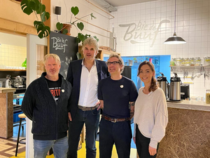 Van links naar rechts: Johan Rispens (visser), Henk Emmens (gedeputeerde), Jos Meijers (Toentje), Desiree van der Wijk (gemeente Westerkwartier)