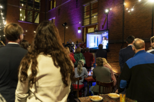 De verkiezingsavond in het provinciehuis op woensdag 15 maart is druk bezocht en in goede sfeer verlopen. Zo'n 300 aanwezigen waren erbij toen de voorlopige uitslagen van een aantal gemeenten op het podium in de Statenzaal werden gepresenteerd. Ook konden zij via tv-schermen in het Atrium de voorlopige uitslagen in de rest van het land volgen.