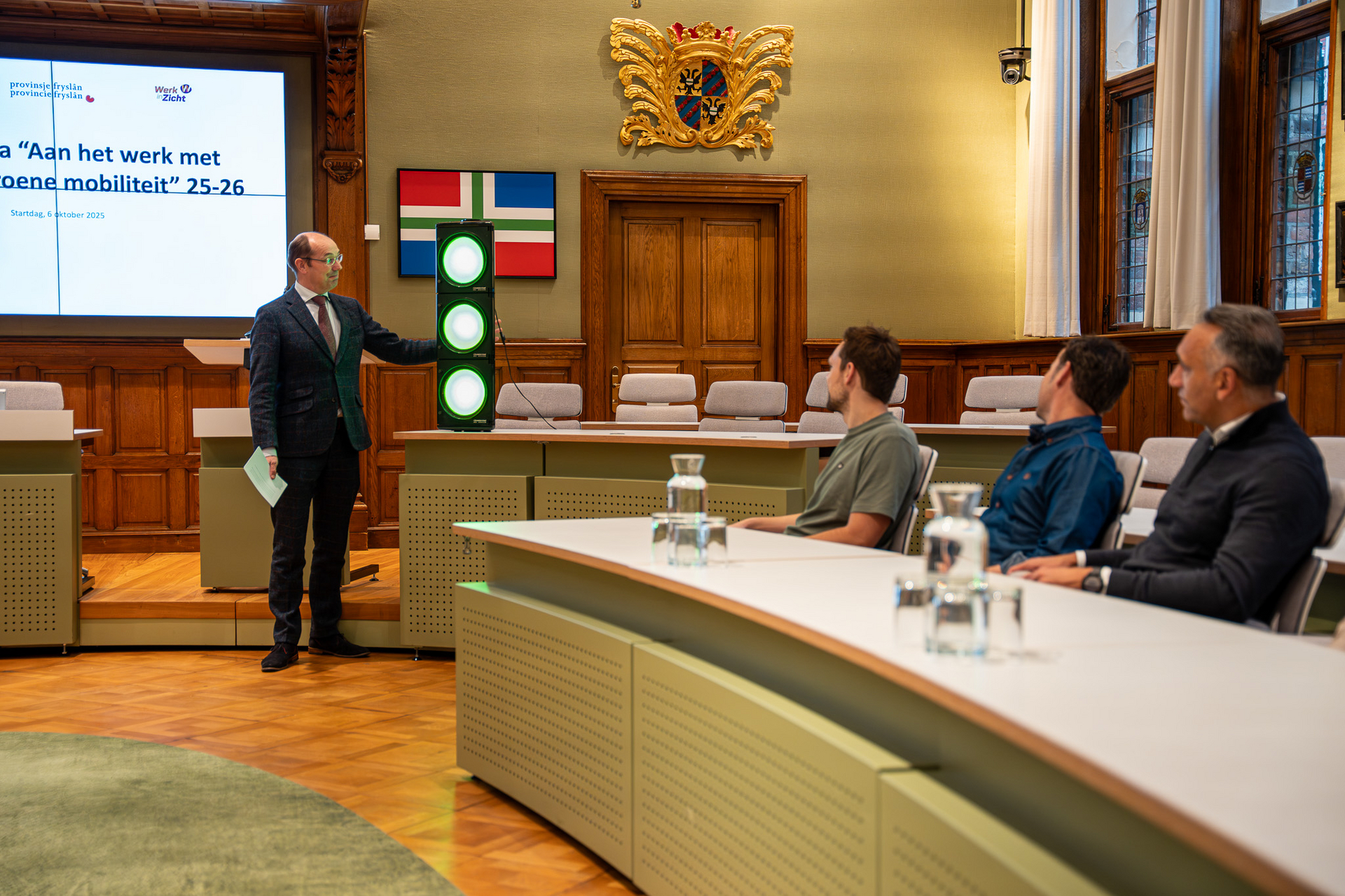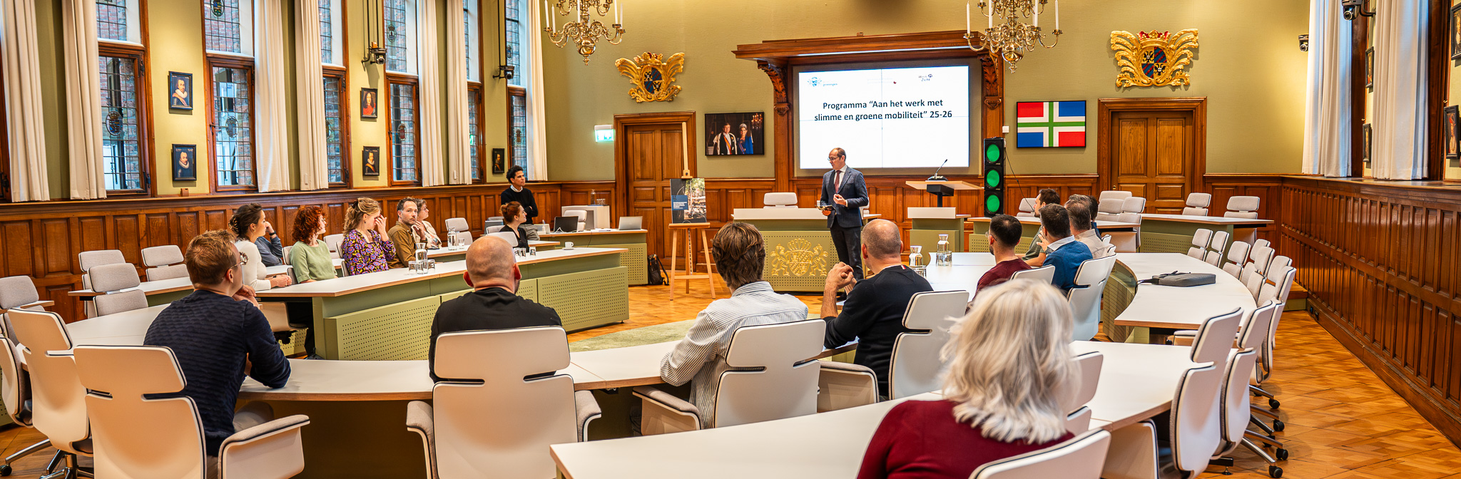 De deelnemers vormen samen het nieuwe team Slimme en Groene Mobiliteit Noord. Zij kwamen samen in de Statenzaal voor de officiële opening van het programma. Na een welkomstwoord verrichtte gedeputeerde Erik Jan Bennema de symbolische opening door alle lichten van een verkeerslicht op groen te zetten. Hiermee is het programma nu echt van start.