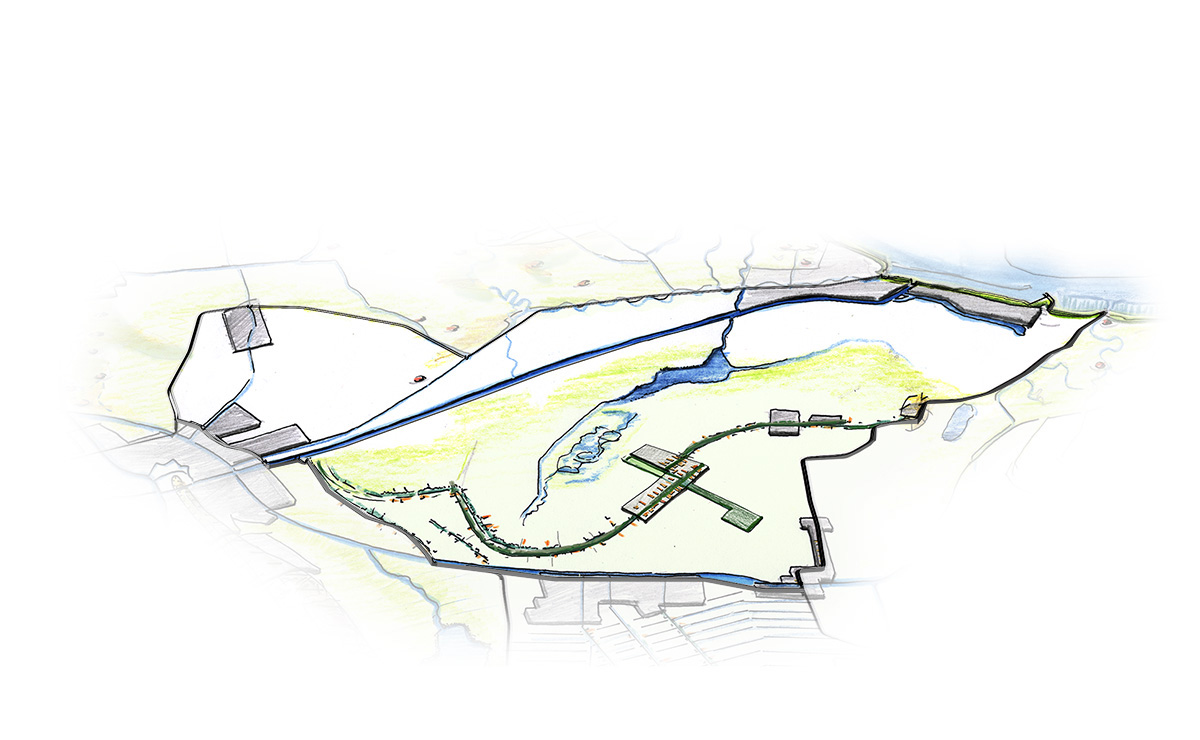 Door het landschap kronkelen wegen, water en vroegere dijken. Hoewel er aan de noordkant ook wierden en wierdendorpen te vinden zijn, liggen in dit gebied vooral wegdorpen: dorpen waarbij de huizen in een rij langs een weg staan. Deze wegdorpen bestaan uit boerderijen, erven (zoals een tuin, binnenplaats of oprit bij een huis) en ‘slingertuinen’, een soort tuin met veel verschillen in hoogte, water, randen met planten en voetpaden. Ook bestaan de wegdorpen uit middeleeuwse kerken en kerkhoven, kloosterterreinen, molens en borgen met landgoedbossen.