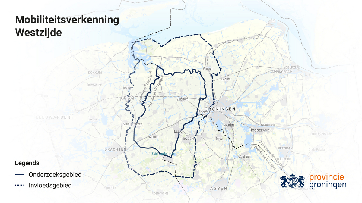 De westzijde van de provincie Groningen is volop in ontwikkeling. Door al deze ontwikkelingen neemt de druk op het verkeer en de wegen waarschijnlijk verder toe. Op dit moment is er geen duidelijk overzicht van alle plannen en de gevolgen voor de bereikbaarheid, veiligheid en leefbaarheid in de gemeente Westerkwartier. Daarom doen de provincie Groningen en de gemeente Westerkwartier samen een mobiliteitsverkenning. Dan kunnen we maatregelen bedenken om de westkant van de provincie ook in 2040 goed bereikbaar, veilig en leefbaar te houden voor iedereen die er woont, werkt of reist.