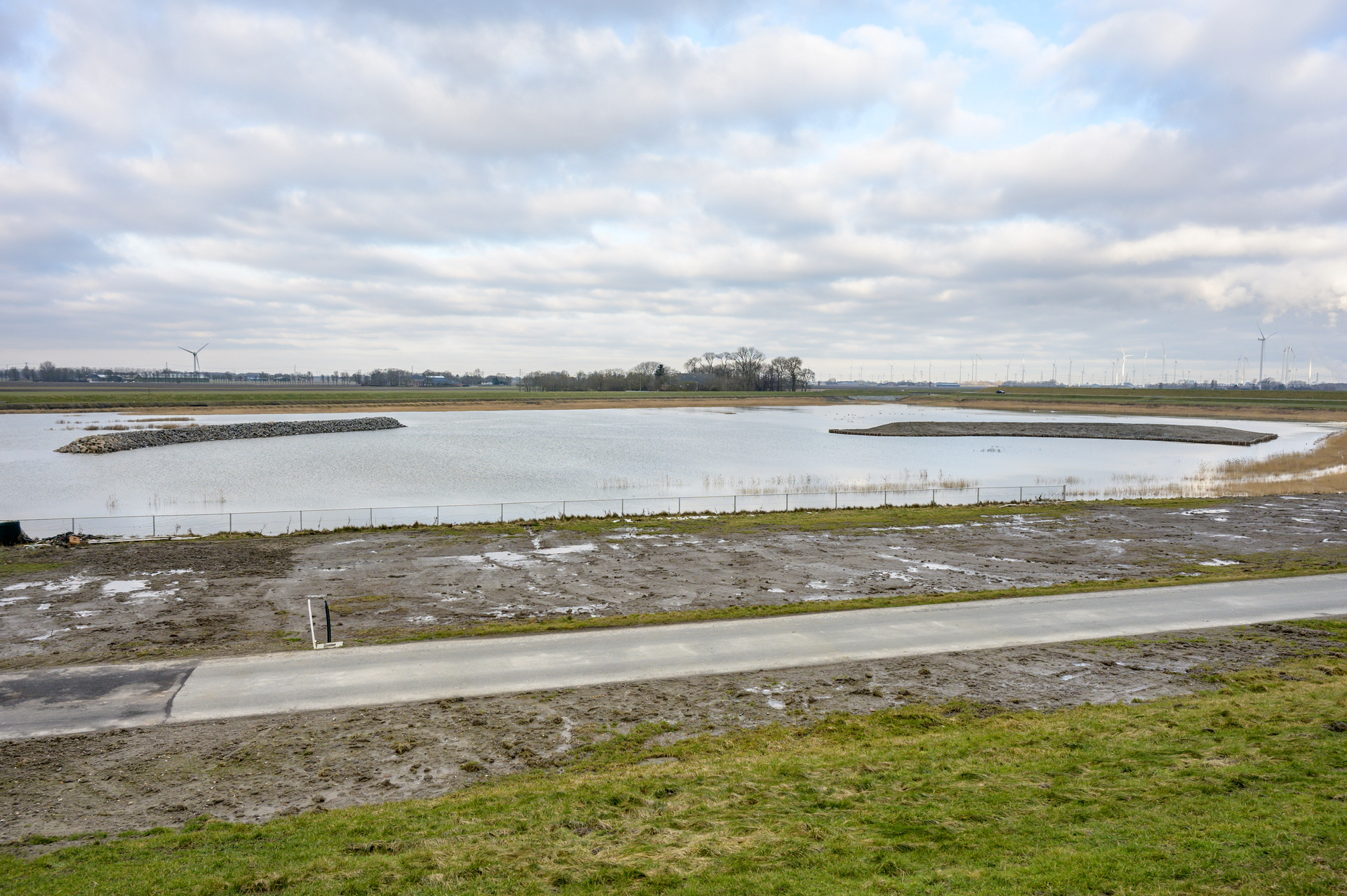 De tweede dijk is gemaakt van de landbouwgrond die eerst op de akker achter de zeedijk lag. Op de braakliggende grond kwamen allerlei planten op zoals kamille. Later groeiden er gras en bloemrijke kruiden om insecten te lokken voor de vleermuizen. Nu er dagelijks vers zeewater binnenstroomt gaan er geleidelijk kwelderplanten groeien zoals zeeaster, lamsoor, zeebies en zeekraal.
